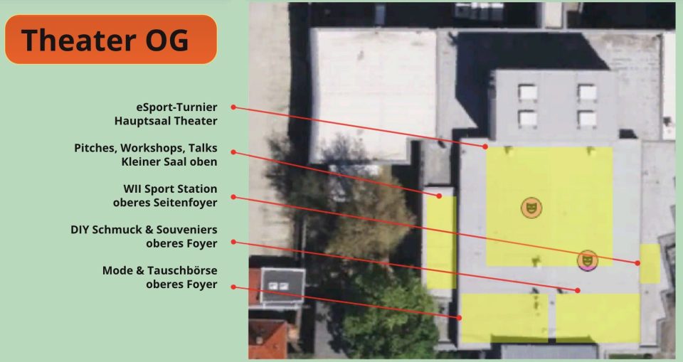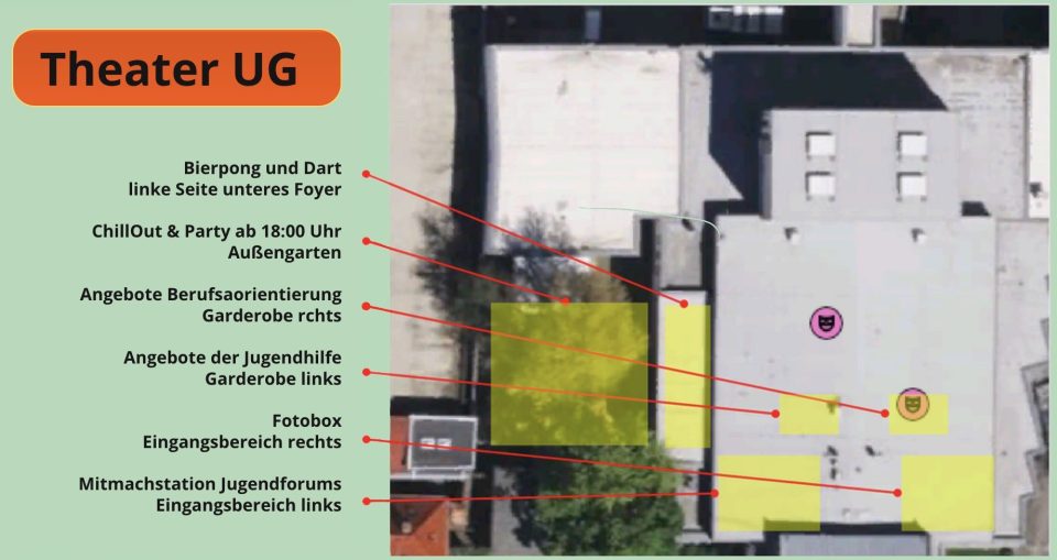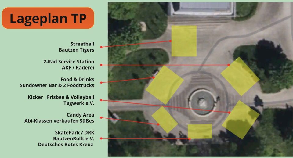 Streetball 🏀 Tischtennis 🏓 Frisbee  Kickerturnier Beachvolleyball 🏐 Gamingturnier   Flohmarkt 👗Fotobox  📸 Graffitiworkshop 🎨 Schmuckworkshop 💍 Cocktailworkshop🍹 Wasserspiele 💦Silent Disco 🕺